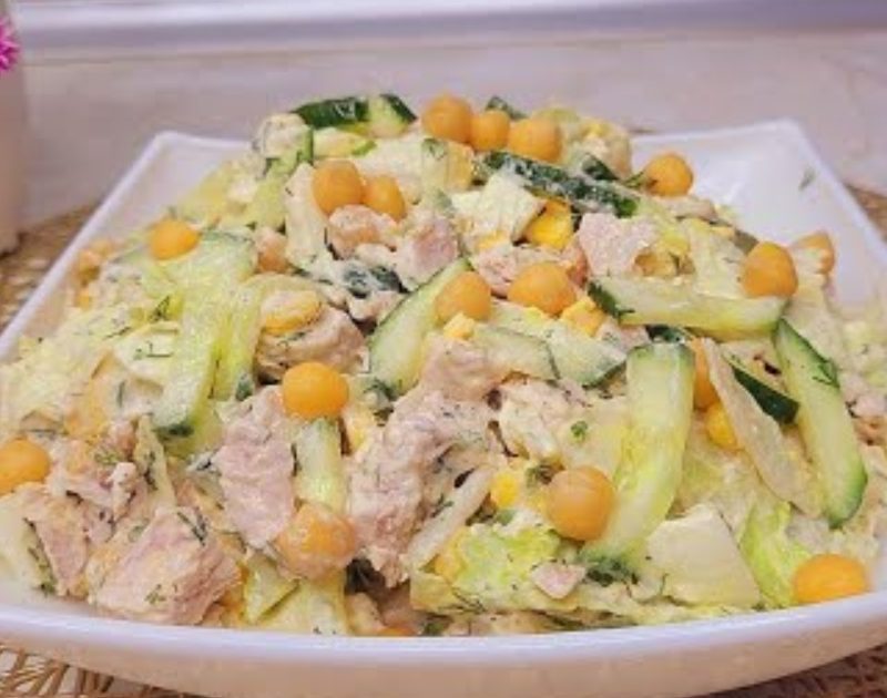 Բաղադրիչներ 300 գ չինական կաղամբ 250 գ հավի խաշած կրծքամիս …