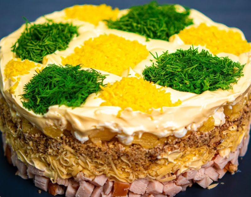 Բաղադրիչներ 300 գ խաշած կամ ապխտած հավի կրծքամիս 5 խաշած …