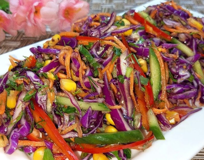 Բաղադրիչներ 350-400 գ կարմիր կաղամբ 1 կարմիր պղպեղ 1 վարունգ …
