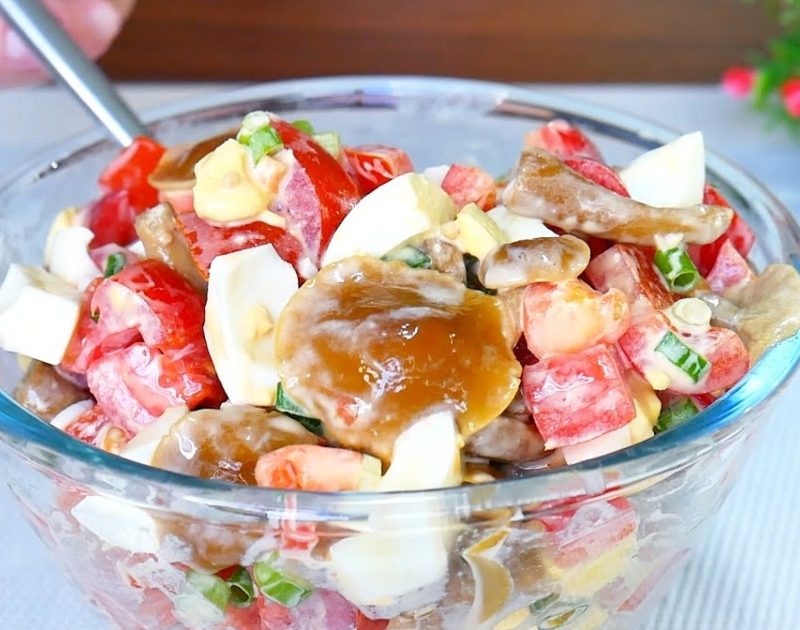 Բաղադրիչներ 3 լոլիկ 1 պղպեղ 150 մարինացված սունկ կանաչ սոխ …