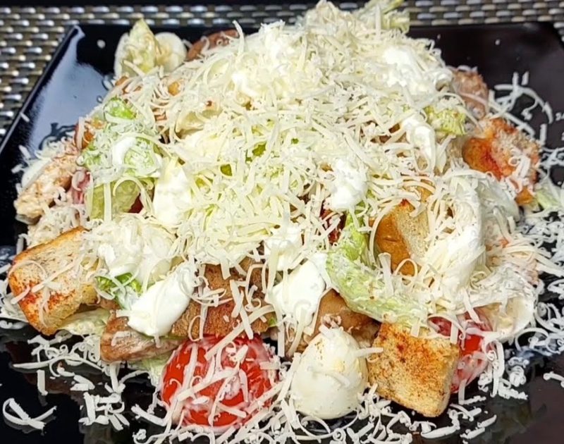 Այս աղցանը պատրաստվում է ամենատարբեր բաղադրատոմսերով, որից մեկն էլ այս համեղ և արագ պատրաստվող տարբերակն է: Աղցան «Կեսար»