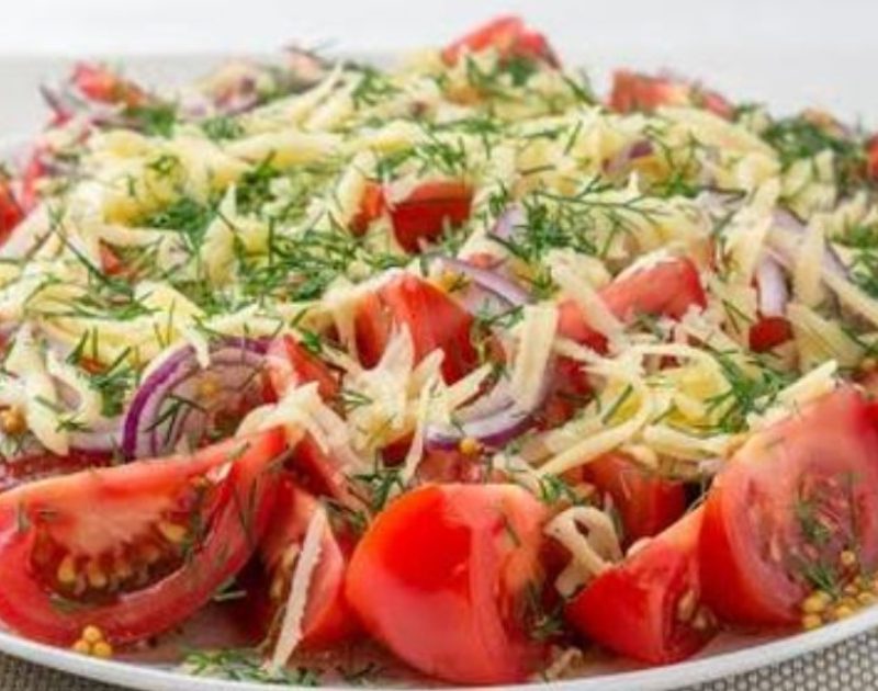 Բաղադրիչներ 6 լոլիկ 50 գ պանիր 1 փոքր կարմիր սոխ …