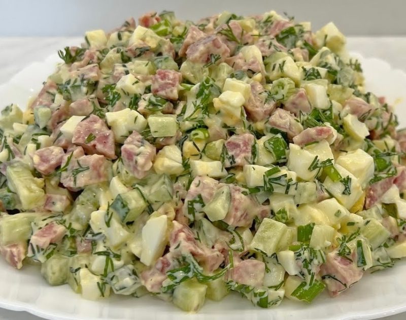 Բաղադրիչներ 200 գ ապխտած երշիկ 1 թարմ վարունգ 3 խաշած …