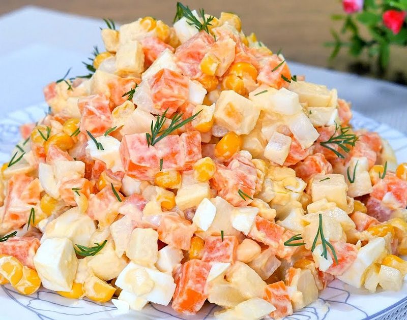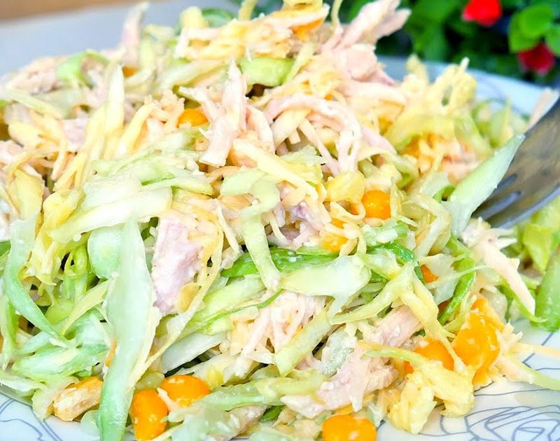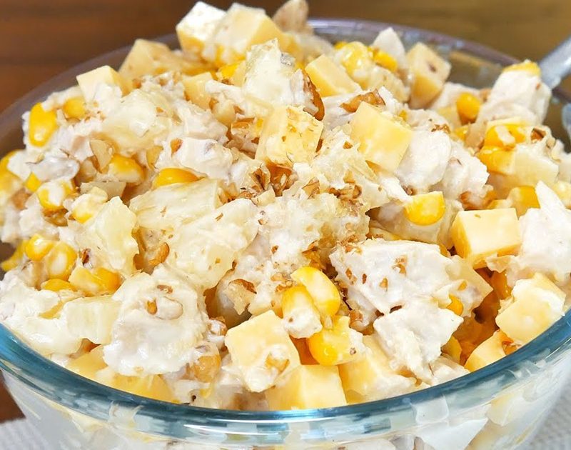 Բաղադրիչներ 1 հավի խաշած կրծքամիս 150 գ մարինացված եգիպտացորեն 350-400 …