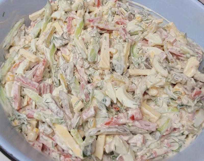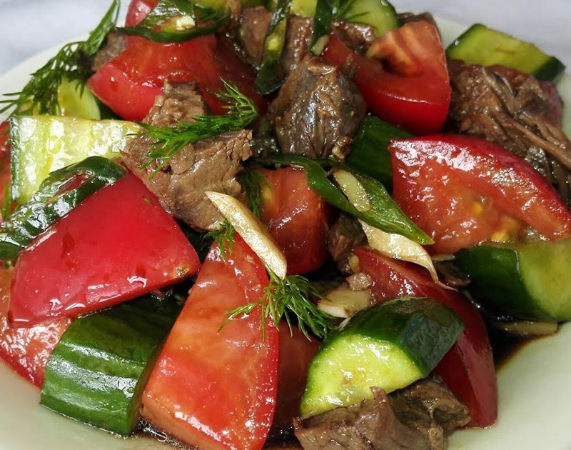 Ամենապարզ և արագ, բյուջետային աղցաններից մեկը: Բանջարեղենով և մսով աղցան