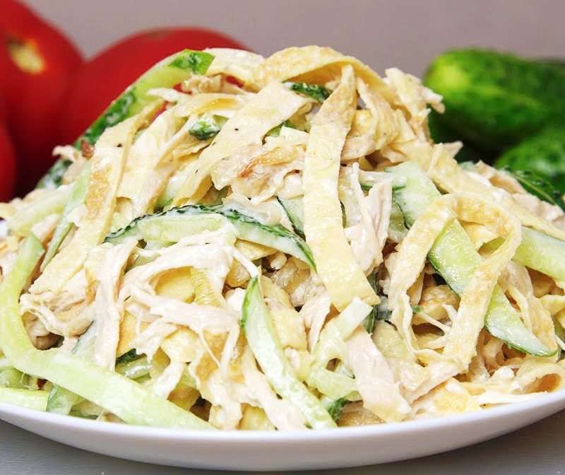 Բաղադրիչներ 4 ձու 200 գ խաշած հավի կրծքամիս 3 թարմ …