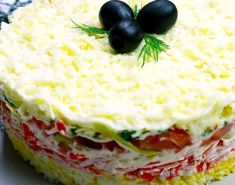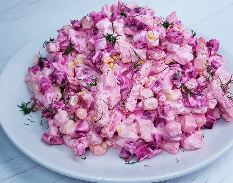Բաղադրիչներ 200 գ կարմիր ձուկ 250 գ ծովախեցգետնի ձողիկներ 1խնձոր …