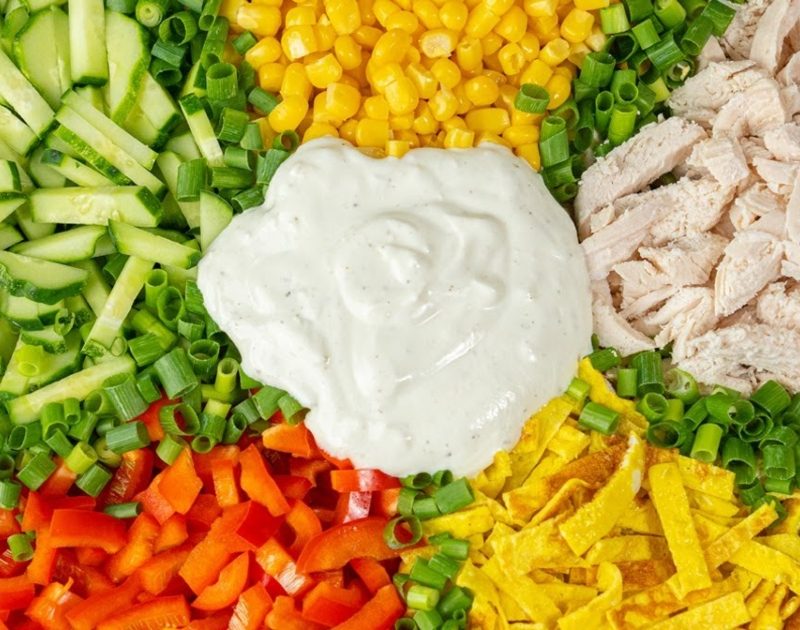 Բաղադրիչներ 350 գ հավի խաշած կրծքամիս 1 տուփ մարինացված եգիպտացորեն …