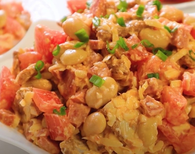 Լոլիկով և լոբով աղցան Բաղադրությունը2-3 հատ լոլիկ1 տուփ պահածոյացված դեղին …